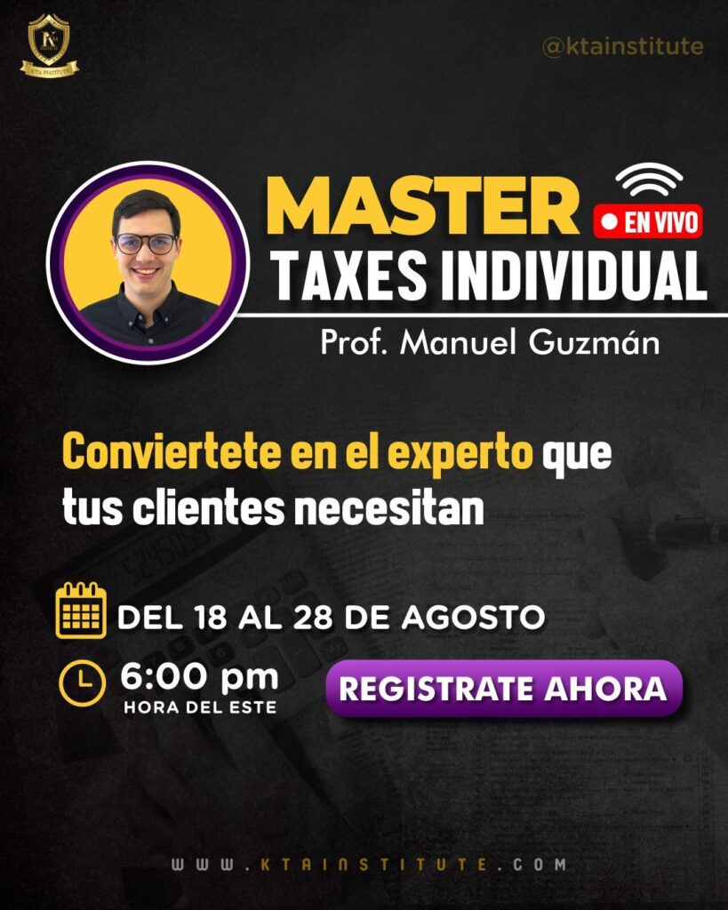 Dar los primeros pasos firmes hacia una nueva profesión rentable y de prestigio. En solo 14 días obtendrás las bases para analizar, preparar y presentar impuestos personales de forma segura y con respaldo legal en EE. UU..